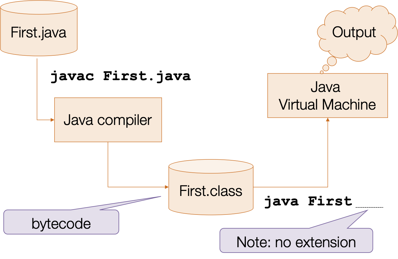 First.javafile is compiled by the Java compilerjavacwith the commandjavac First.javathe output of the compilation is the